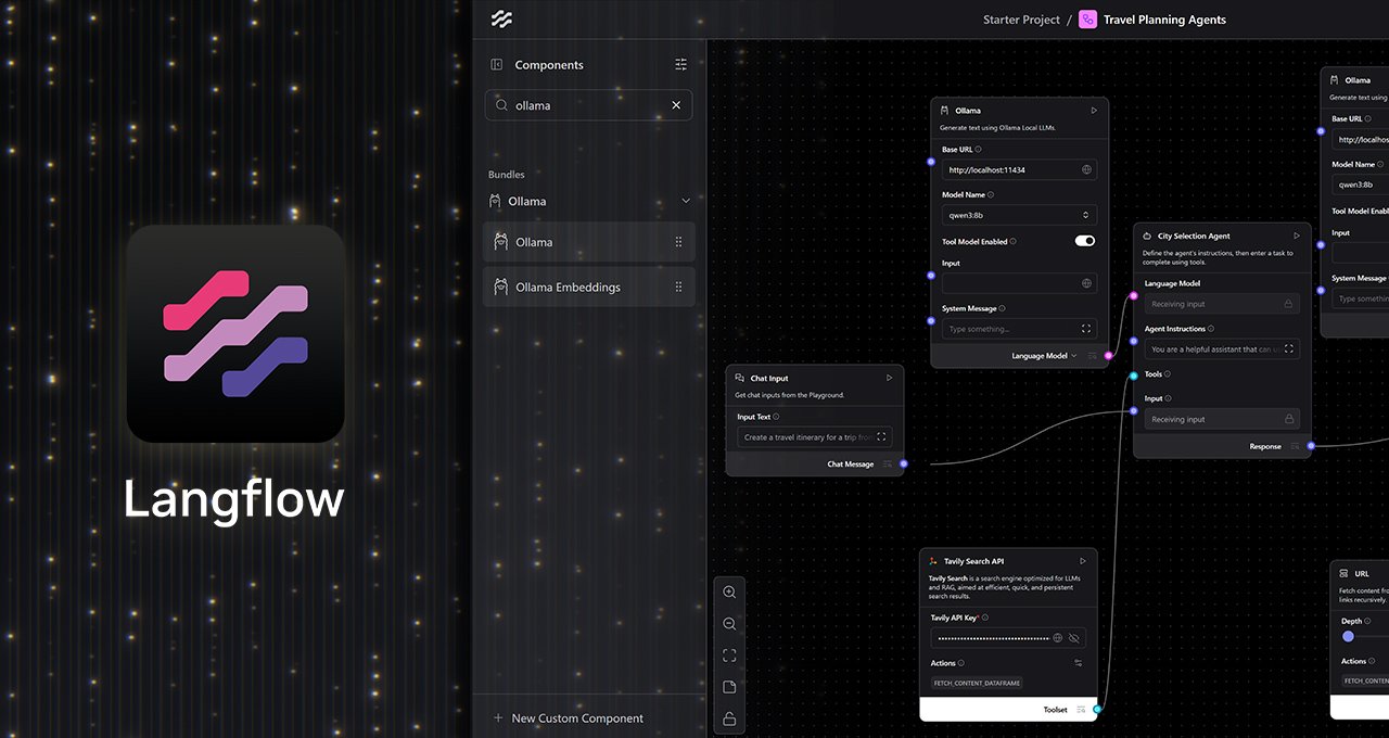 Getting started with Ollama within Langflow is simple. Built-in starters are available for use cases ranging from travel agents to purchase assistants. The default templates typically run in the cloud for testing, but they can be customized to run locally on RTX GPUs with Langflow.