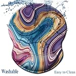 【ECO-FRIENDLY MATERIAL】Mouse pad is made of soft and comfortable heat-resistant polyester fabric top. With silicone wrist support and non-slip gel backing, firmly grips the desktop,keeps the mouse pad from sliding.