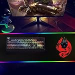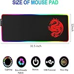【15 RGB Mouse Pad & LARGE SIZE】RGB Gaming Mouse Pad features 15 Lighting Modes: includes 9 kinds of Monochromatic Light, 1 kind of RGB Alternating, 2 kinds of RGB Breathing , 3 kinds of RGB Running. the light is bright but not deter from viewing the monitor. The size of 31.5 x 12 inches fit your mouse and keyboard perfectly and still have a large amount of movement space.