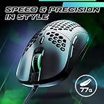▼Speed & Precision in Style: Ultra Lightweight honeycomb gaming mouse, ideal for MEDIUM & LARGE hands. Born in ultralight to lighten your load from every movement, achieve your speedy move and precise actions every time.
