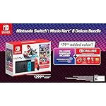 Nintendo Switch bundle includes a console, the Mario Kart 8 Deluxe game, and 12 months of Nintendo Switch Online. This bundle has everything you need to start playing right away, including a Nintendo Switch system with Neon Red and Neon Blue Joy-Con controllers. Plus, enjoy an added value of $79.98 with a full game download for the full Mario Kart 8 Deluxe game and a 12-month Nintendo Switch Online Individual Membership. You can start multiplayer races right out of the box—just pass a Joy-Con controller to a friend and play together on the same system. Or pick up more controllers (sold separately) and get up to 4 people in on the fun.