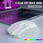 【5 DPI Adjustable & Battery Rechargeable】This rechargeable gaming mouse can be adjusted within 5 levels dpi (4000-2400-1600-1200-800) by pressing the DPI button; Built-in 600Mah lithium battery, with USB charging cable, Low battery indicator will remind you to charge it with flashing red light. can be recharged while charging, not afraid of power off in gaming.