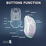 【14 RGB Rainbow Backlight】The white mouse has beautiful RGB led rainbow backlit.This Bluetooth wireless mouse is equipped with RGB lighting effects. can offer 6 kinds of chroma backlight Press the top button to switch the lighting mode, the lights can also be turned off, more cool and interesting especially when gaming in the dark.