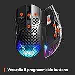 Empower yourself to command any battlefield with the versatile, ultra-lightweight Aerox 5 Wireless. Victory is in your hand with a lightning-fast 74g build, engineered to excel in any gaming genre with a wide range of customization. 9 programmable buttons provide gamers with quick shortcuts and macros to dominate the competition, including a convenient 5-button side panel and the custom-built up/down flick switch. Next-gen Quantum 2.0 Wireless brings lag-free gameplay with the flexibility of 2.4GHz and Bluetooth 5.0 connectivity for up to 180 hours. Our powerful IP54-rated AquaBarrier protection shields the Aerox 5 from water, dust, dirt, and more. Engineered to perfection, the Aerox 5 Wireless has all the components for glory, except for one – you.