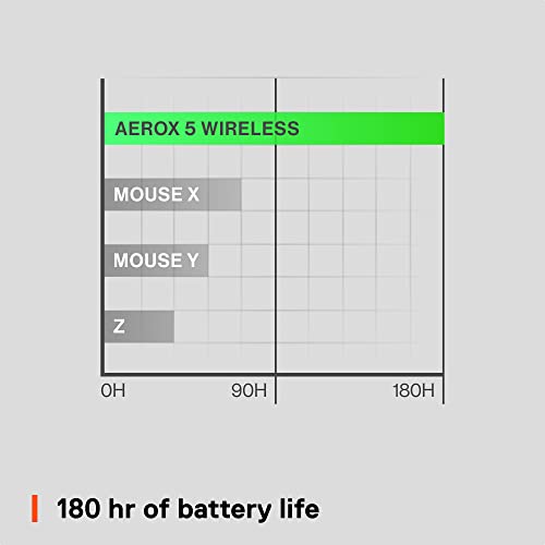 Empower yourself to command any battlefield with the versatile, ultra-lightweight Aerox 5 Wireless. Victory is in your hand with a lightning-fast 74g build, engineered to excel in any gaming genre with a wide range of customization. 9 programmable buttons provide gamers with quick shortcuts and macros to dominate the competition, including a convenient 5-button side panel and the custom-built up/down flick switch. Next-gen Quantum 2.0 Wireless brings lag-free gameplay with the flexibility of 2.4GHz and Bluetooth 5.0 connectivity for up to 180 hours. Our powerful IP54-rated AquaBarrier protection shields the Aerox 5 from water, dust, dirt, and more. Engineered to perfection, the Aerox 5 Wireless has all the components for glory, except for one – you.